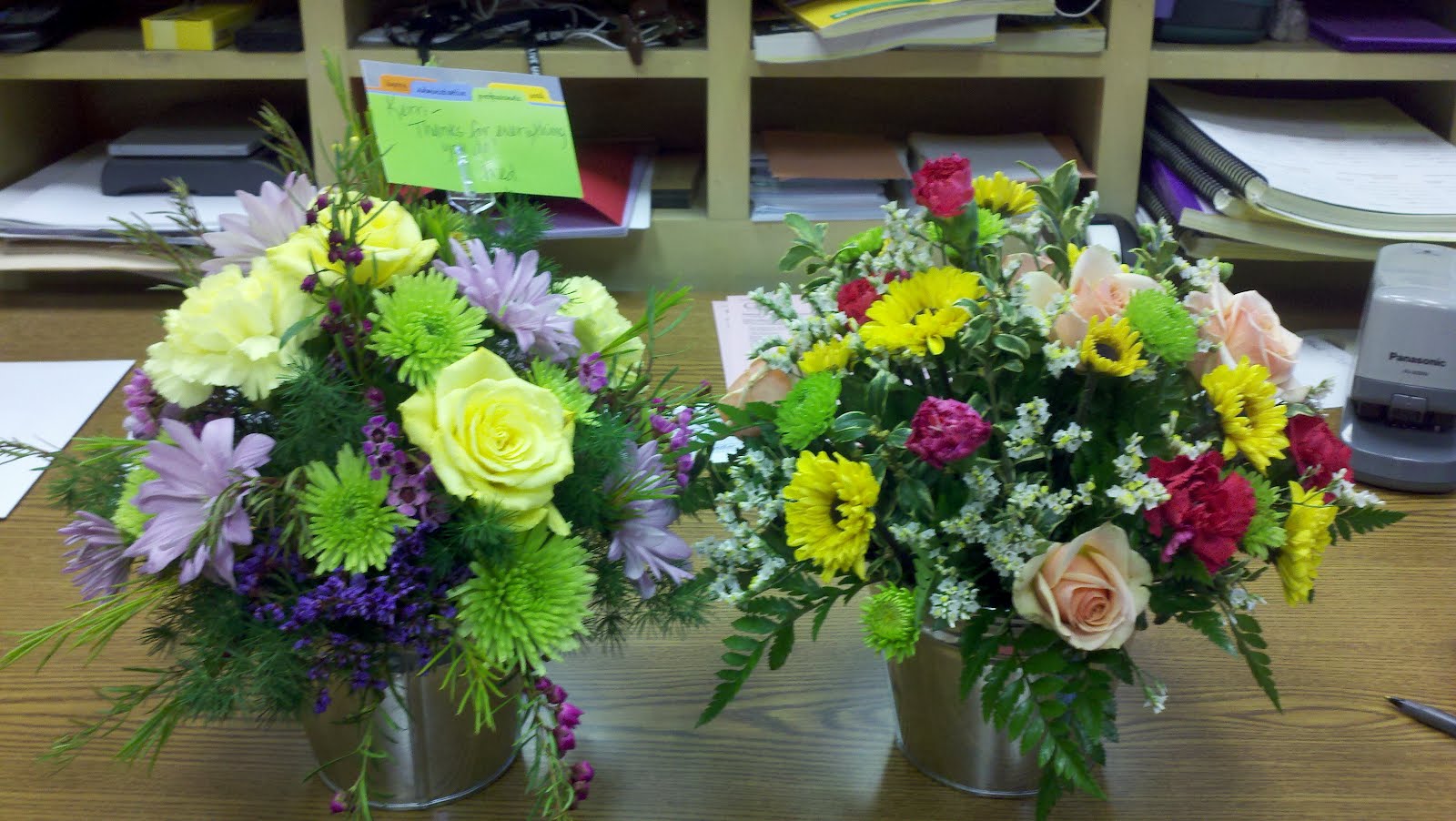 I have some of the most amazing co-workers. Not only did I get these beautiful flowers, but there was tons of yummy food in the lounge and a sweet card to take on a "me" shopping spree.
